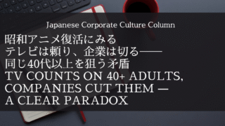 The Japanese TV industry relies on viewers over 40, while major companies target the same group for early retirement. This article explores the resulting paradox and its impact on media and corporate culture.