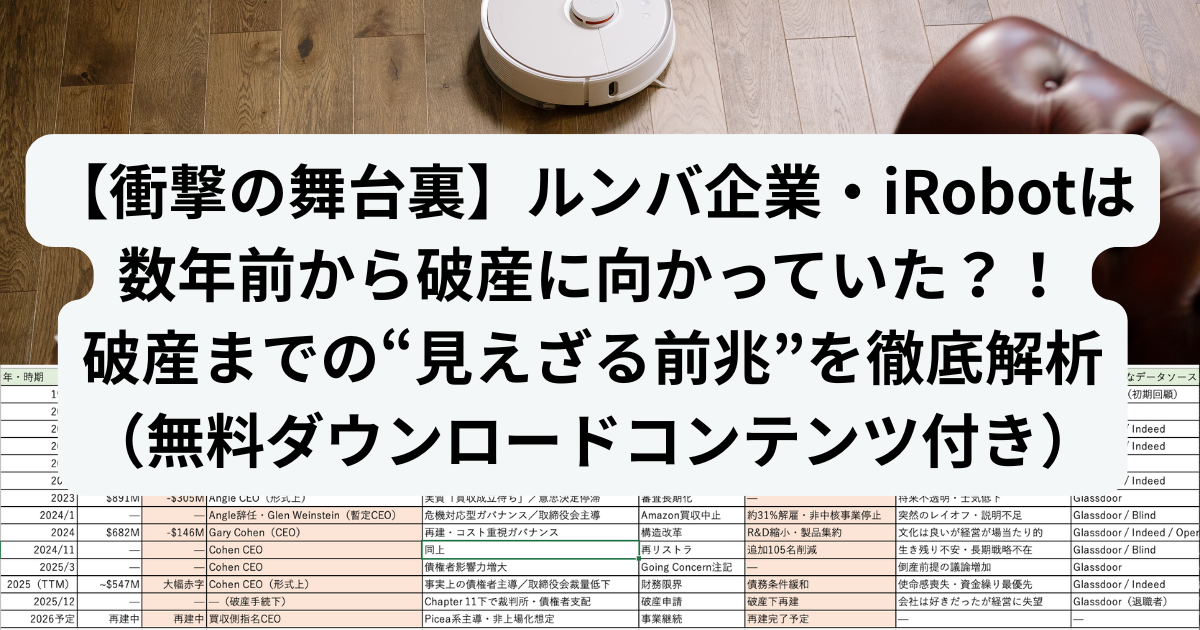 創業者退任とCEO交代の時点で、iRobotは事実上「破産に向かう道筋」が決まっていたといえます。Cohenは会社を救うというより、債権者や買収先の要求に沿って最小限の損失で整理する役割を担ったに過ぎません。
