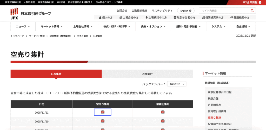 日本の空売り情報は、主に東京証券取引所(JPX)の公式サイトで公開されています。