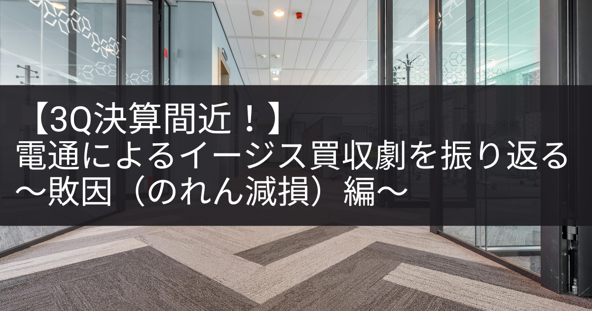 もうすぐ電通グループの2025年12月期第3四半期決算の発表が控えている。ここ数年、同社の経営を語るうえで避けて通れないのが、2013年のイージス・グループ4,000億円での買収である。今回はなぜイージス買収に失敗したのかを振り返りたいと思う。